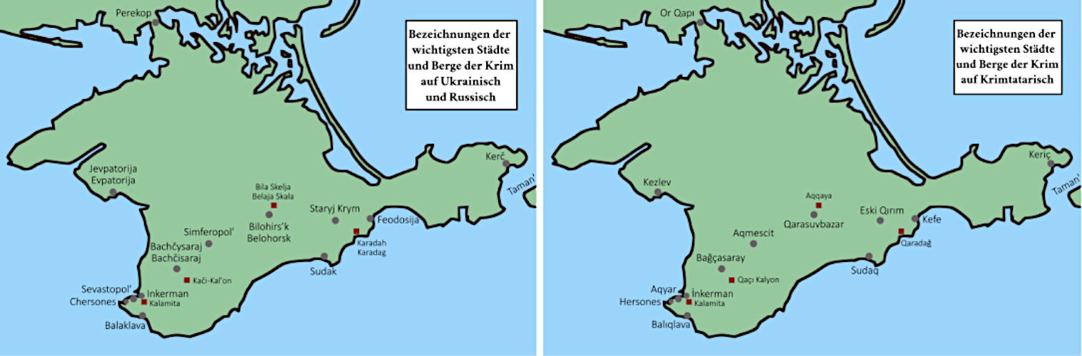 Bezeichnungen der wichtigsten Städte und Berge der Krim